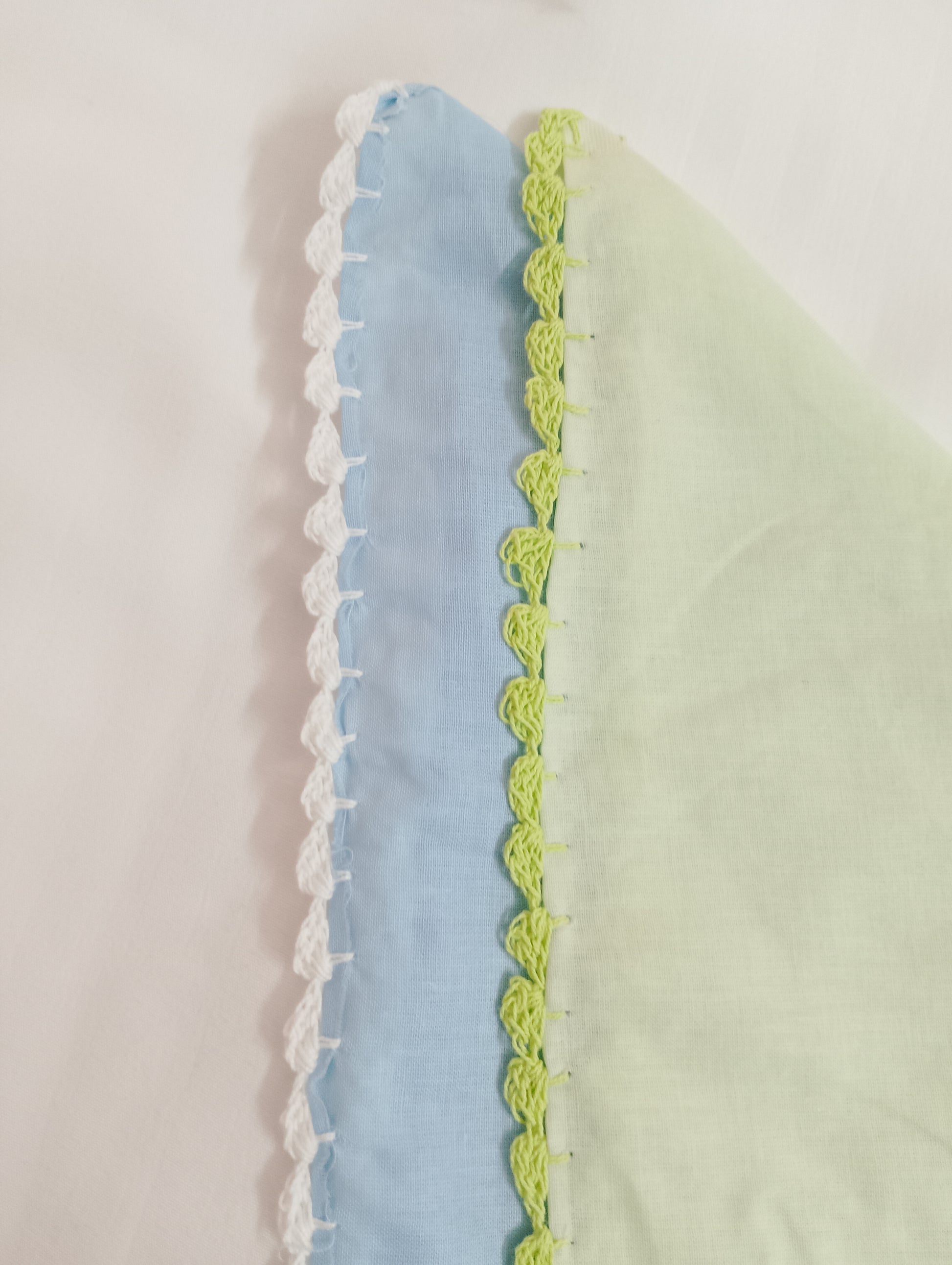Cotton hanky with crochet border. Colour might vary with phone